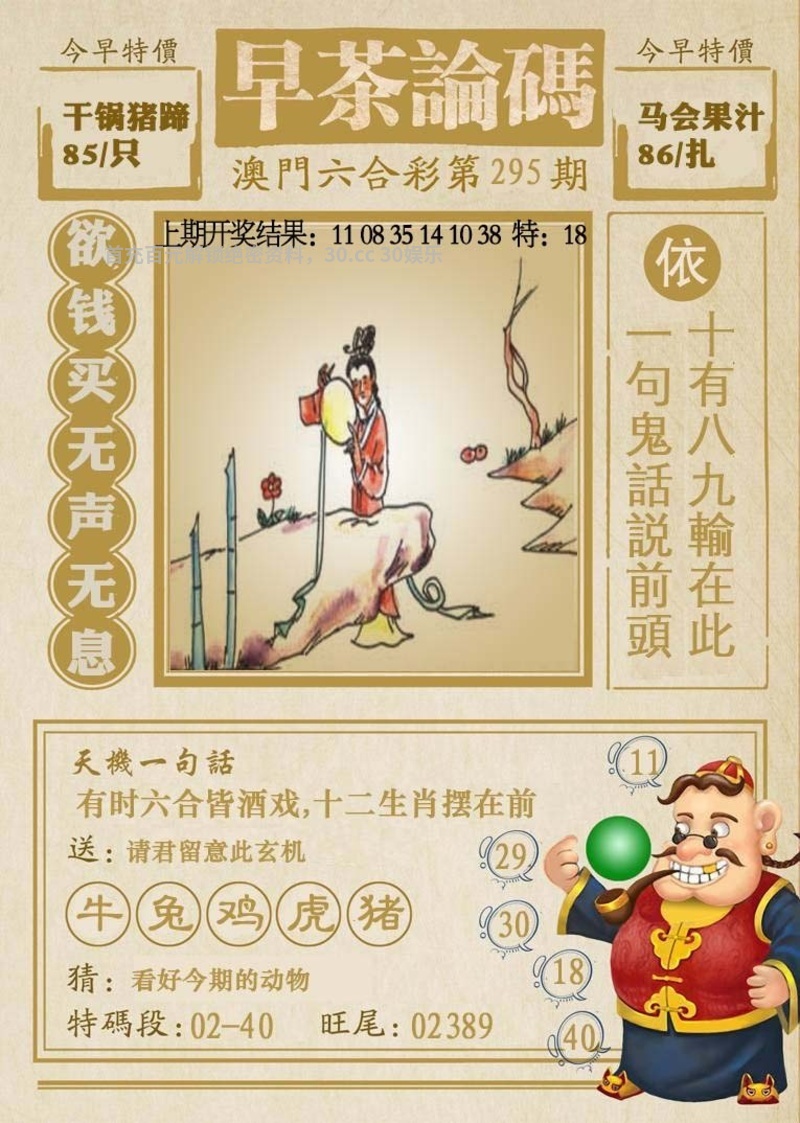 | 300期:早茶论码 解释:资料正在更新中 综合9肖:资料正在更新中 综合9码:$$.$$.$$.$$.$$.$$.$$.$$.$$ 越前越主,以上分析只代表个人理解,对错勿怪 |